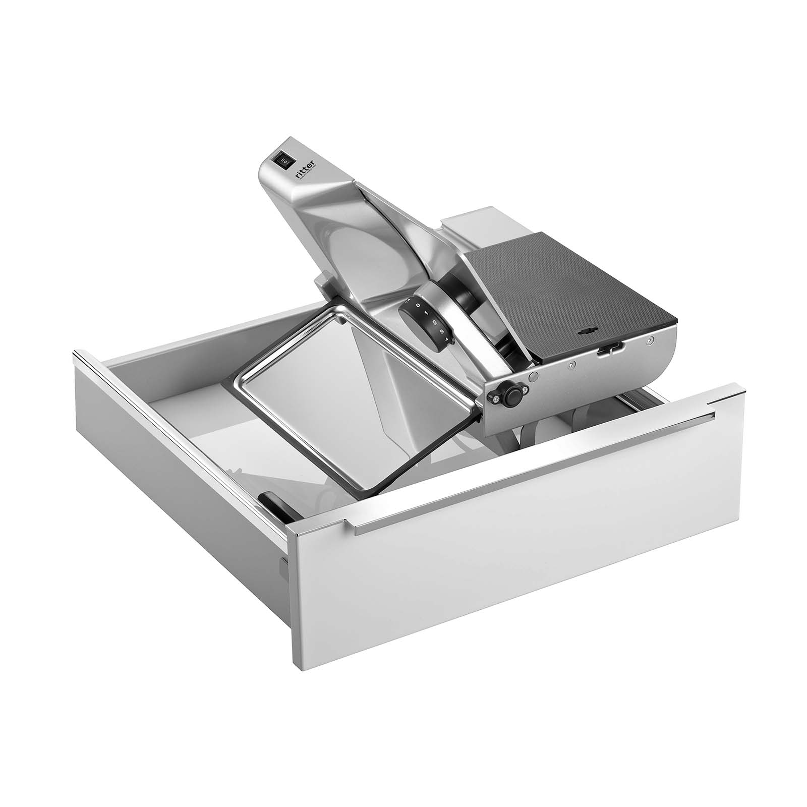 Food slicers built into kitchen drawers are space-saving and yet always within reach. The built-in solution also frees up space on the countertop.