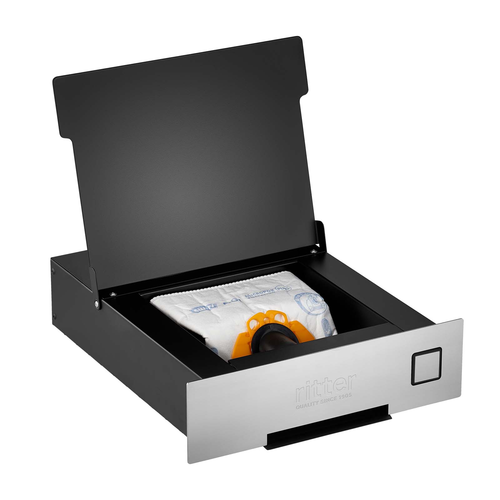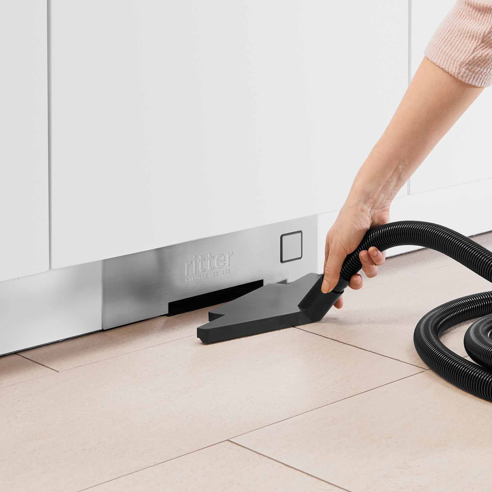 Discover the innovative BVC 10 built-in vacuum cleaner in a stylish stainless steel look, which takes the hassle out of lugging around a conventional vacuum cleaner. Specially designed for installation in almost any furniture plinth from a height of 10 cm, provided there is a cut-out at least 345 mm wide.
