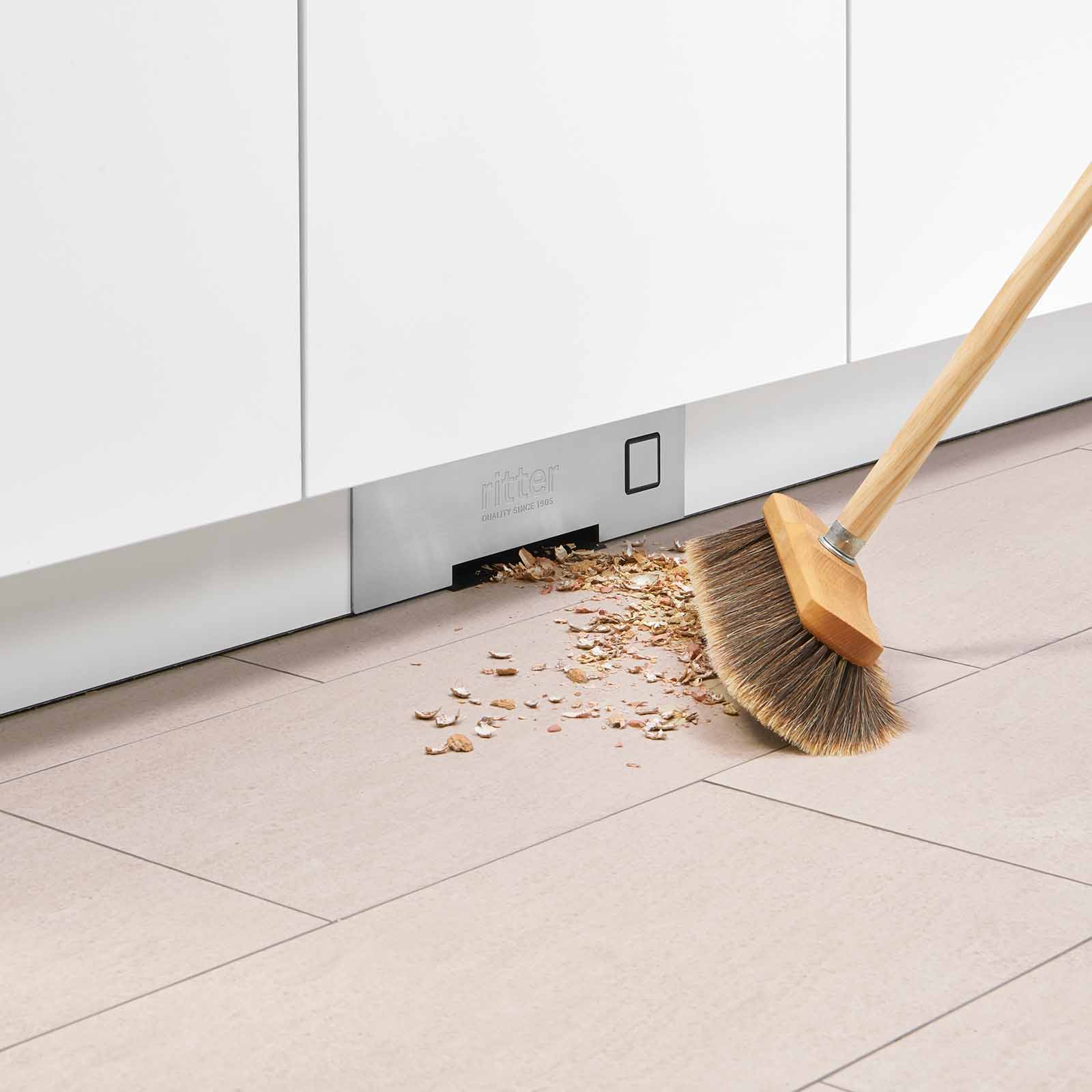 The vacuum cleaner is always ready for use as it is placed directly in the kitchen plinth. A simple tap with the foot or brush is all it takes to activate the appliance. The powerful 600 watt motor sucks up any dirt that is swept in front of the suction slot in a matter of seconds. With an overall height of just 10.5 centimetres, the BVC 10 fits effortlessly under almost any piece of furniture and, thanks to its compact dimensions, can also be easily integrated at a later date - all you need is a standard 230-volt power connection.