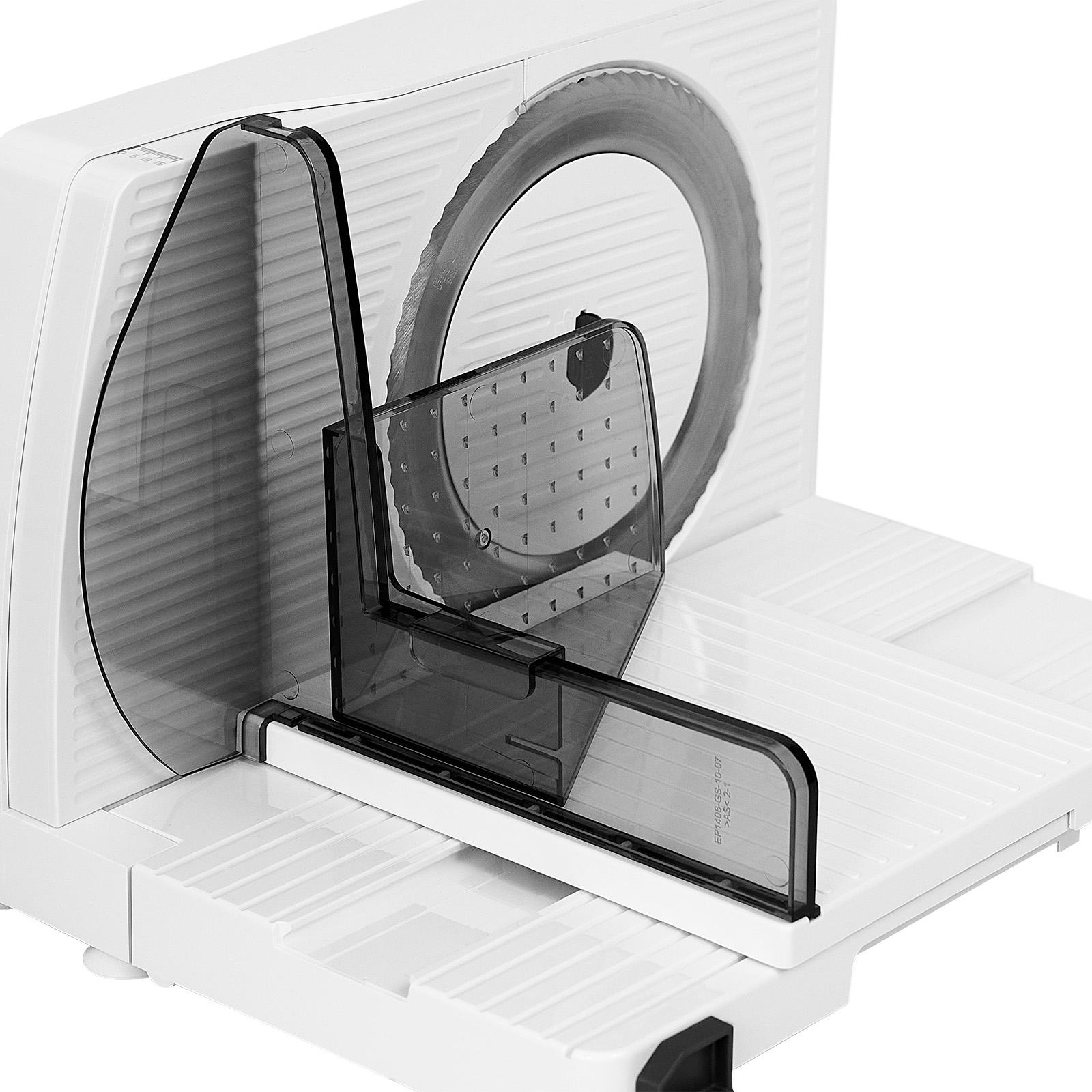 Das Modell ist mit einem Wellenschliffmesser, 17 cm Ø, ausgestattet und verfügt über eine integrierte Messerabdeckung, die noch bessere Schneidergebnisse ermöglicht. Die stufenlose Schnittstärkeeinstellung von 0 bis ca. 15 mm erweitert die Einsatzmöglichkeiten – von hauchdünnem Aufschnitt bis zu dickeren Brotscheiben.