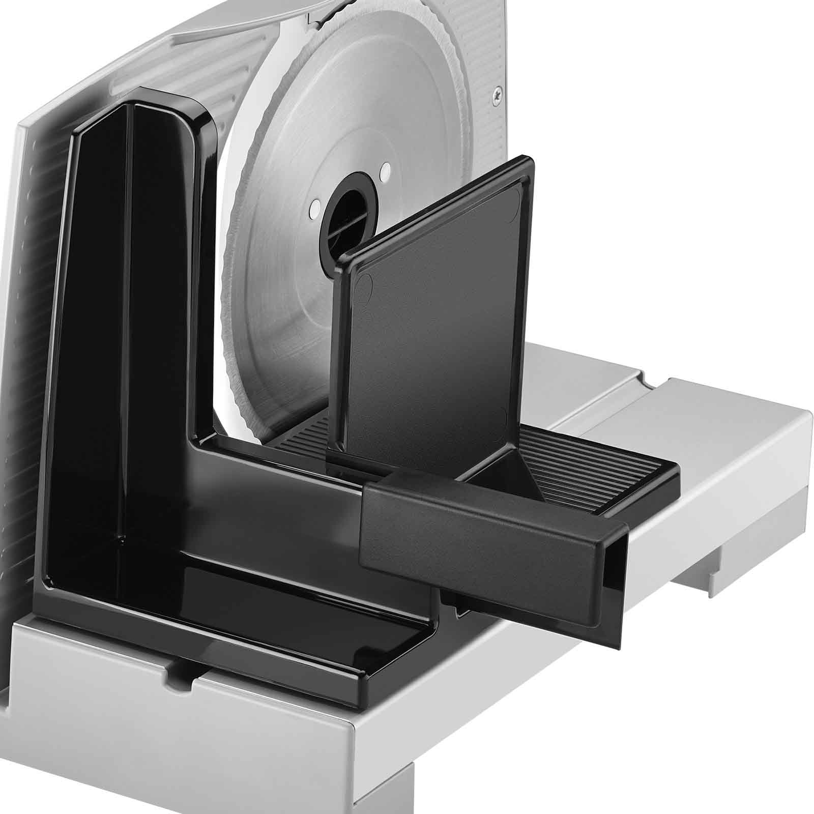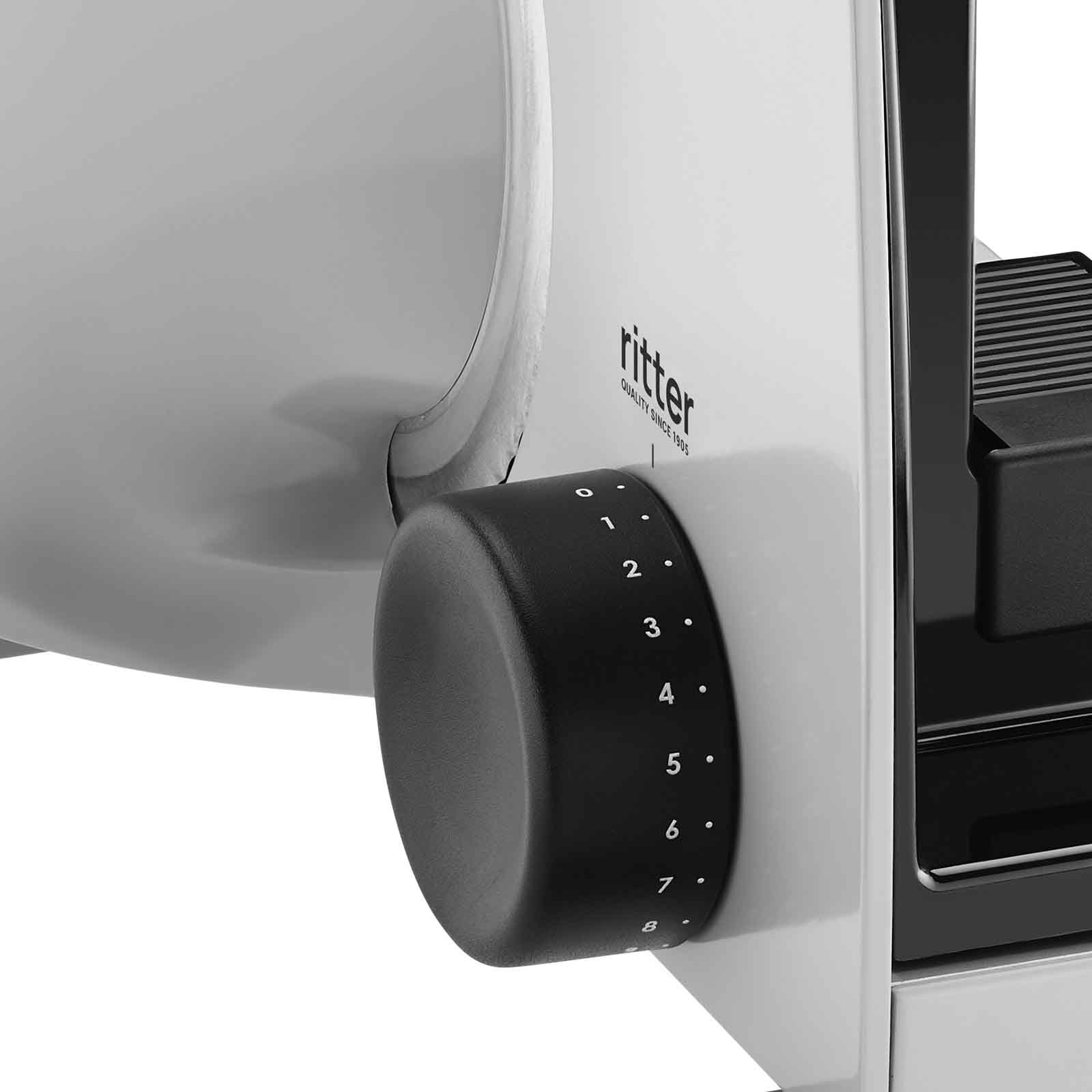Die Schnittstärke kann stufenlos bis ca. 20 mm eingestellt werden. Durch den abnehmbaren Schlitten kann auch größeres Schneidgut geschnitten werden. Angetrieben wird der Allesschneider sigma1 durch einen 65 Watt Eco-Motor, der im Vergleich zum Vorgängermodell, 20 % sparsamer und trotzdem 50 % kraftvoller ist.