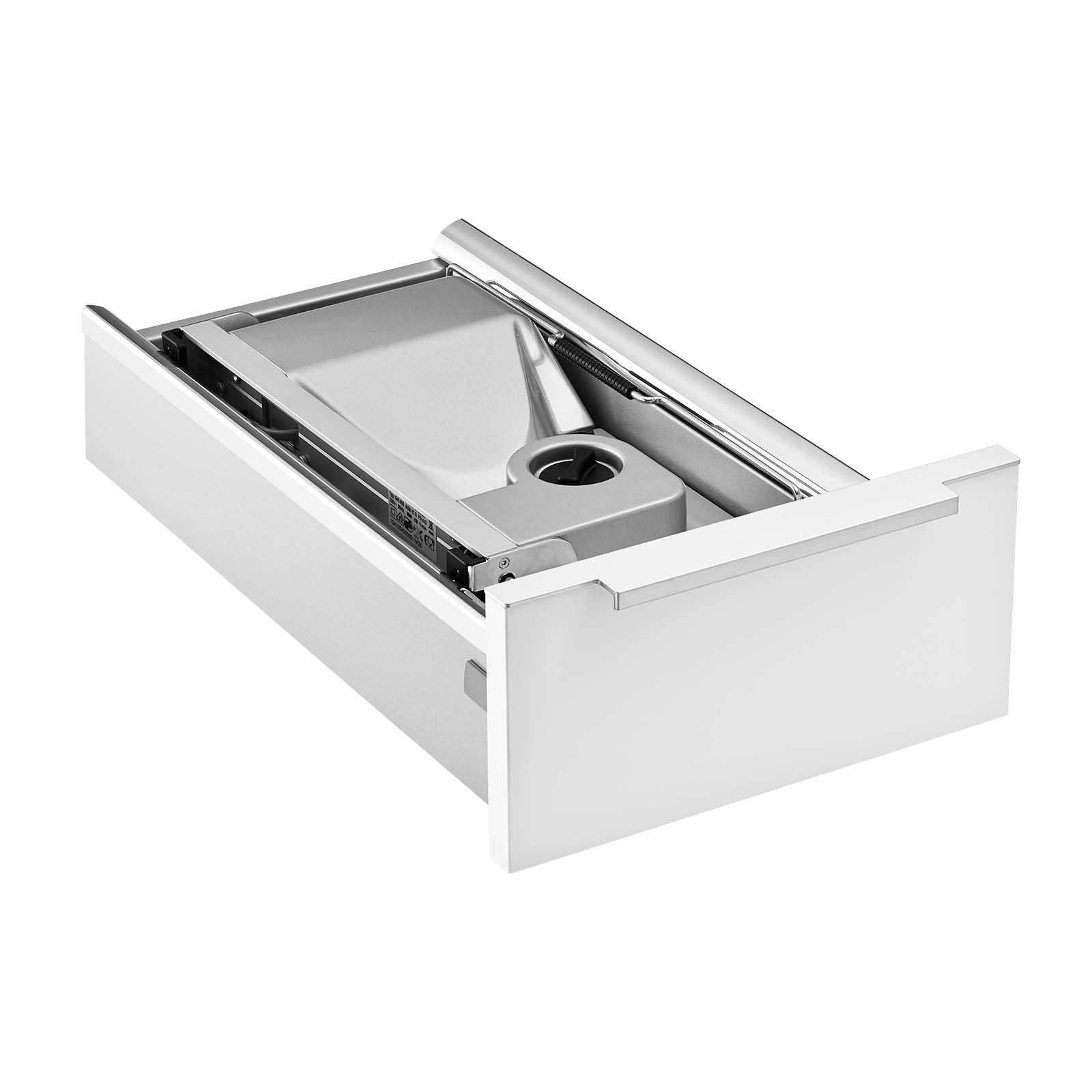 Das Gerät braucht extrem wenig Platz und kann zur Reinigung problemlos aus der Schublade ausgebaut werden.