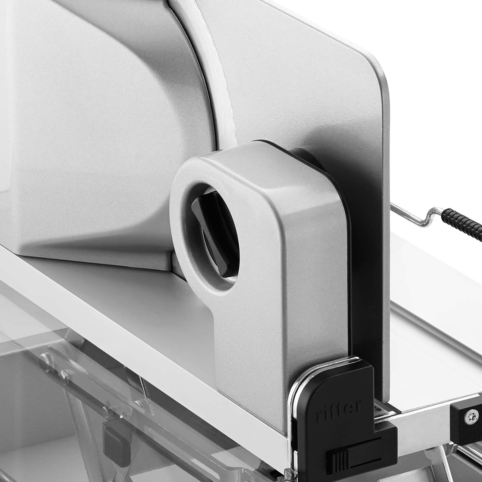 - Dieses Gerät darf nicht ohne Schneidgutschlitten oder Restehalter benutzt werden, es sei denn die Größe und Form des Schneidguts lässt deren Gebrauch nicht zu.